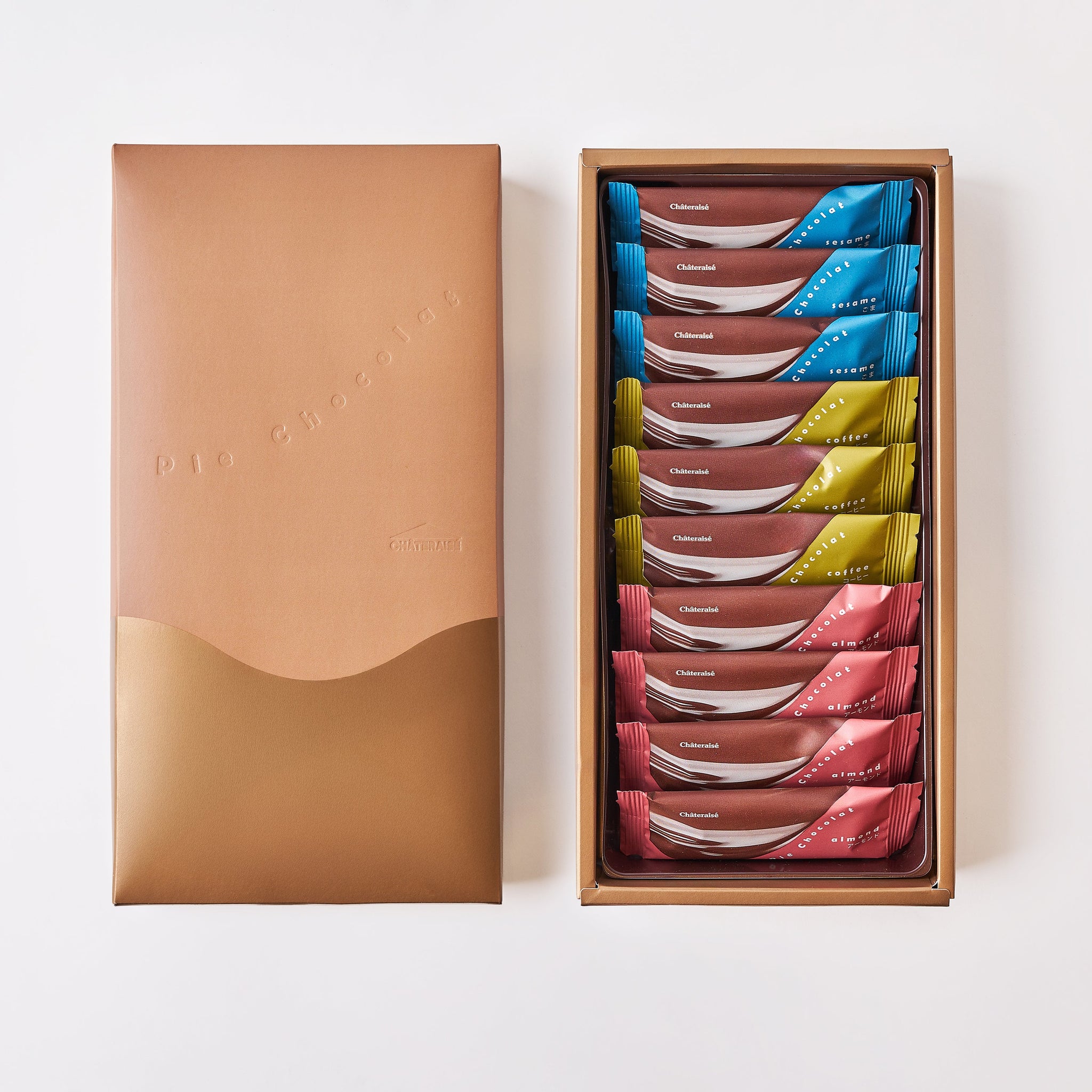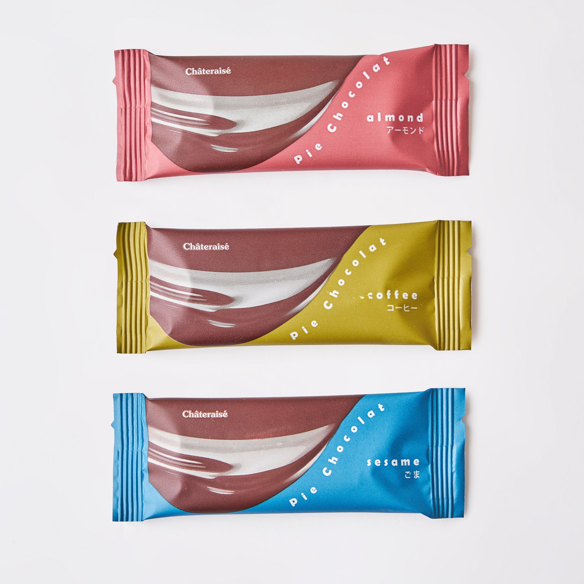 Delicately baked, ultra-thin pie layers wrapped in luscious Belgian couverture chocolate. Each bite blends crisp texture with smooth chocolate melt. Available in three exquisite flavours: Sesame, Coffee, and Almond.